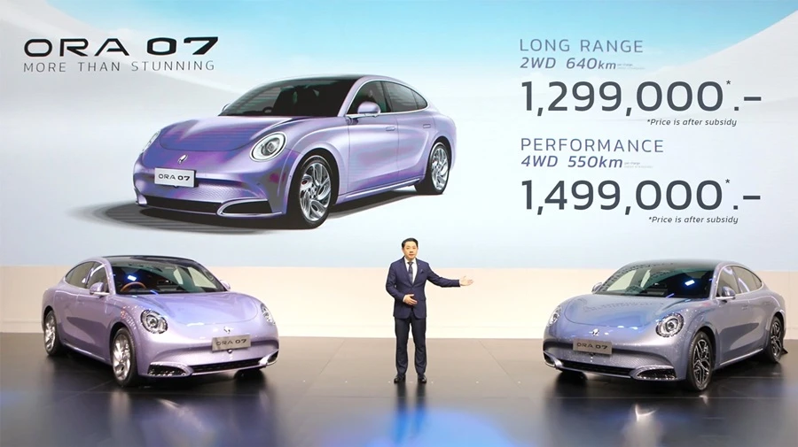 นายณรงค์ สีตลายน กรรมการผู้จัดการ เกรท วอลล์ มอเตอร์ (ประเทศไทย) กล่าวว่า “จนถึงปัจจุบัน เกรท วอลล์ มอเตอร์ ได้ส่งมอบรถยนต์พลังงานไฟฟ้าสู่ครอบครัวชาวไทยไปแล้วมากกว่า 27,000 คัน จากรถยนต์ทั้งหมด 8 รุ่นที่ได้เปิดตัวและจำหน่ายไปแล้ว โดยการเปิดตัวและประกาศราคา ORA 07 อย่างเป็นทางการภายในงาน Motor Expo 2023 ในวันนี้ นับเป็นความสำเร็จต่อความมุ่งมั่นสู่การเป็นผู้นำด้านยานยนต์พลังงานไฟฟ้า และบรรลุเป้าหมาย Mission 9 in 3 หรือการเปิดตัวรถยนต์พลังงานไฟฟ้า 9 รุ่นภายใน 3 ปี ที่ เกรท วอลล์ มอเตอร์ ได้เคยประกาศไว้เมื่อ 3 ปีก่อน นอกจากนี้ความสำเร็จในวันนี้ยังแสดงถึงการเดินหน้าเพื่อเติมเต็มตลาดรถยนต์ไฟฟ้าในไทย พร้อมมอบทางเลือกใน D-Segment ของรถยนต์ไฟฟ้าซีดาน รวมถึงการส่งเสริมการ
