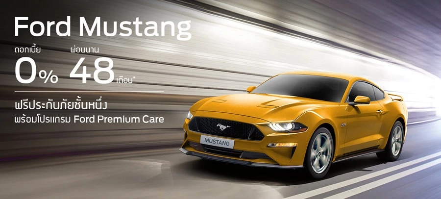 - ฟอร์ด มัสแตง รถสปอร์ตระดับตำนาน มาพร้อมแคมเปญสุดเร้าใจ ดอกเบี้ยพิเศษ 0% นาน 48 เดือน ดาวน์ 25% พร้อมแพ็คเกจฟอร์ด พรีเมี่ยม แคร์ นาน 5 ปี หรือ 100,000 กิโลเมตร แล้วแต่ระยะใดถึงก่อน และฟรีประกันภัยชั้นหนึ่ง