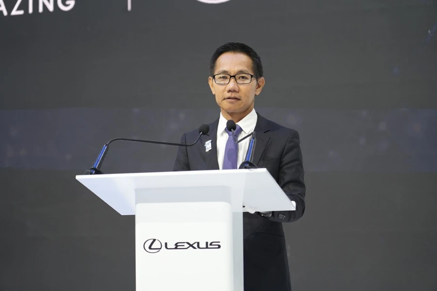 นายศุภกร รัตนวราหะ รองกรรมการผู้จัดการใหญ่ เลกซัสกรุ๊ป บริษัท โตโยต้า มอเตอร์ ประเทศไทย จำกัด แถลงข่าวเปิดบูท