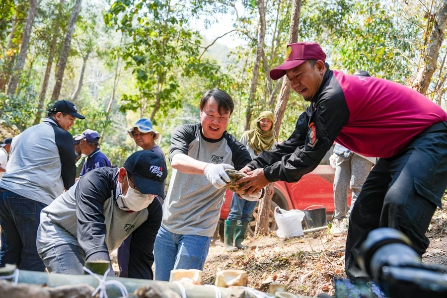 พร้อมกันนี้ นิสสัน ยังได้นำทีมพนักงานของบริษัทร่วมกับพนักงานของผู้จำหน่ายฯ ในพื้นที่ ร่วมกันสร้างฝายชะลอน้ำที่ บ้านแม่ตะไคร้ อ. แม่อร เพื่อเพิ่มความชุ่มชื้นระยะยาวให้แก่ผืนป่า จ. เชียงใหม่ ซึ่งเป็นจุดที่มีการเกิดไฟป่าบ่อยครั้ง โดยเมื่อพ้นฤดูกาลไฟป่าไปแล้ว ฝายชะลอน้ำแห่งนี้ยังจะช่วยสนับสนุนการฟื้นฟูป่าและธรรมชาติโดยรอบอีกด้วย