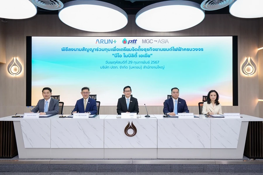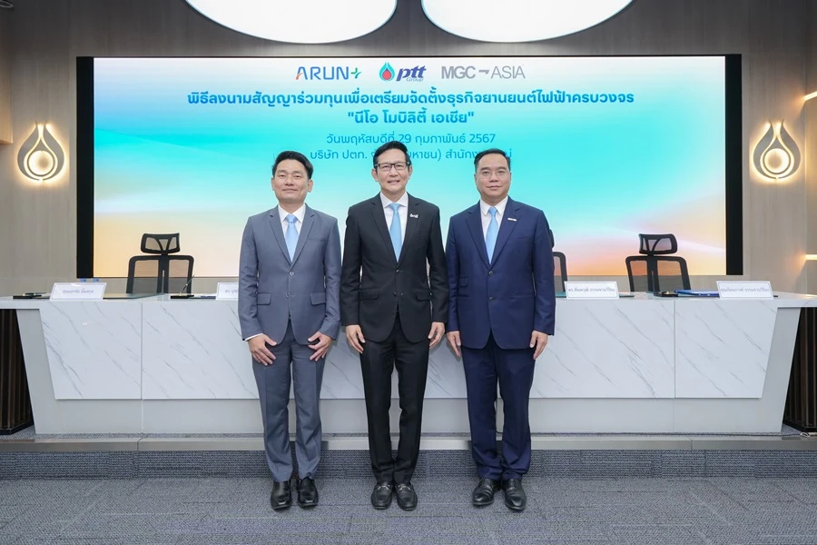 ดร. สัณหวุฒิ ธรรมชวนวิริยะ ประธานเจ้าหน้าที่บริหารกลุ่ม บริษัท มิลเลนเนียม กรุ๊ป คอร์ปอเรชั่น (เอเชีย) จำกัด (มหาชน) หรือ MGC-ASIA และ นายเอกชัย ยิ้มสกุล กรรมการผู้จัดการ บริษัท อรุณ พลัส จำกัด ตัวแทนกลุ่มอรุณ พลัส ร่วมลงนามในสัญญาเตรียมจัดตั้งบริษัทร่วมทุน บริษัท นีโอ โมบิลิตี้ เอเชีย จำกัด (นีโอ โมบิลิตี้ เอเชีย) โดยมี นายอรรถพล ฤกษ์พิบูลย์ ประธานเจ้าหน้าที่บริหารและกรรมการผู้จัดการใหญ่ บริษัท ปตท. จำกัด (มหาชน) เป็นประธานในพิธี พร้อมด้วยผู้บริหารจาก ปตท. กลุ่มอรุณ พลัส และ MGC-ASIA ร่วมเป็นสักขีพยาน ณ ห้องพลังไทย 2 บริษัท ปตท. จำกัด (มหาชน) สำนักงานใหญ่ กรุงเทพมหานคร เพื่อดำเนินธุรกิจจัดจำหน่ายยานยนต์ไฟฟ้าครบวงจรในประเทศไทย เช่น บริการสถานีอัดประจุไฟฟ้า บริการประกันภัย บริการสินเชื่อเช่าซื้อ ลีสซิ่ง สินเชื่อรีไฟแนนซ์และการเงินอย่างครบวงจร บริการให้เช่ายานยนต์ไฟฟ้า บริการหลังการขาย ศูนย์เช็คระยะ เปลี่ยนอะไหล่ ตลอดจนซ่อมสีและตัวถัง เป็นต้น