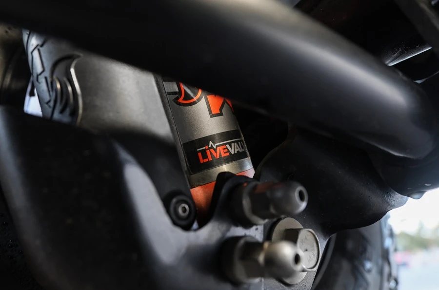 แมตต์เสริมต่อว่าเทคโนโลยีไลฟ์ วาล์ว แบบกึ่งแอคทีฟ ในโช้คอัพ FOX ตอบสนองต่อโหมดการขับขี่แต่ละโหมดแตกต่างกัน ผ่านการควบคุมปริมาณน้ำมันในกระบอกโช้ค เซ็นเซอร์รอบรถจะทำหน้าที่วัดการหมุนพวงมาลัย แรงเหยียบบนคันเร่ง แรงเบรก การเร่งของแชสซี ความเร็วรอบ และระยะห่างตัวถังจากพื้นถนน รวมกันมากถึง 500 ครั้งต่อวินาที โดยระบบไลฟ์ วาล์ว จะวางแผน วิเคราะห์ และอ้างอิงชุดข้อมูลอัลกอริทึมต่างๆ จากนั้นจึง ‘คาดการณ์และเตรียมพร้อม’ ให้รถตอบสนองต่อการขับขี่ตามรูปแบบที่ผู้ขับเลือก และตามสภาพเส้นทางที่ต้องเผชิญ