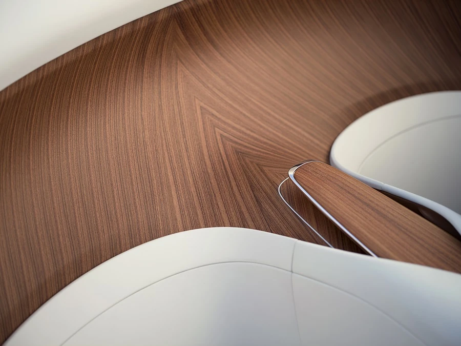 ไม้ Santos Straight Grain (ซานโตส ลายตรง) ได้รับเลือกให้นำมาใช้ในงานออกแบบครั้งนี้ ด้วยเนื้อสัมผัสที่หรูหราและรูปลักษณ์ที่น่าสนใจ มีลายไม้ที่โดดเด่นมีเอกลักษณ์เฉพาะตัว เข้ากันได้อย่างลงตัวผ่านความละเมียดละไมในการออกแบบ