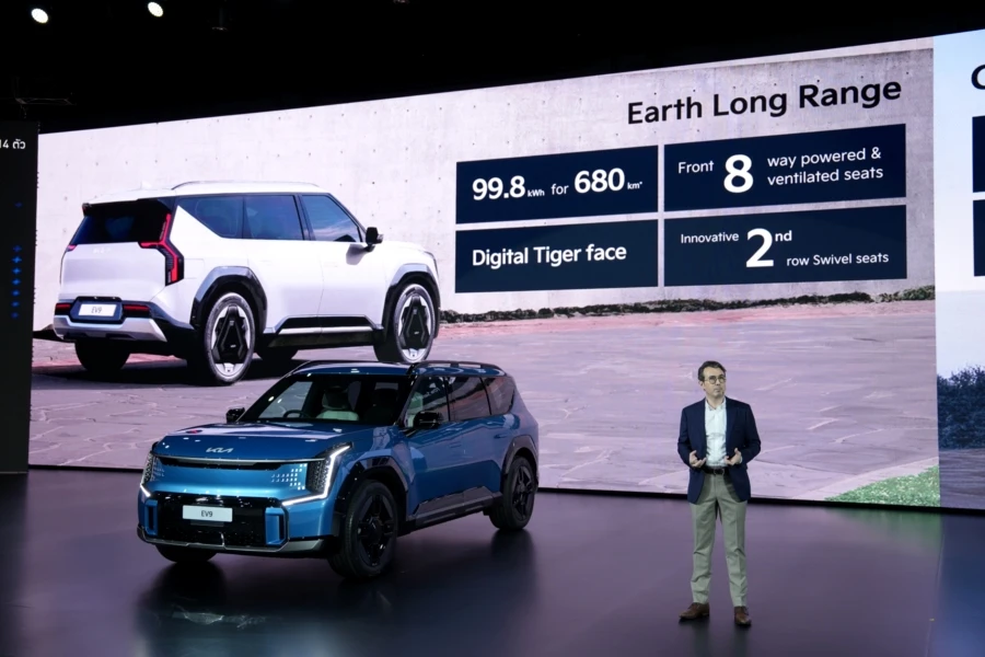 “Kia EV9” รถยนต์เอสยูวี 6 ที่นั่งรุ่นเรือธงคันแรกของบริษัทฯ ซึ่งขับเคลื่อนด้วยพลังงานไฟฟ้าเต็มรูปแบบในประเทศไทย โดย “Kia EV9” เป็นรถยนต์เอสยูวีขนาดใหญ่ที่โดดเด่นด้วยสไตล์ที่แตกต่าง ผสมผสานความปลอดภัยอันเหนือชั้น โดยการเปิดตัว “Kia EV9” นับเป็นก้าวสําคัญของบริษัทฯ ในฐานะ ‘แบรนด์ที่มุ่งตอบโจทย์การเดินทางอย่างยั่งยืน’ หรือ ‘Sustainable Mobility Solutions Provider’ โดยงานเปิดตัว “Kia EV9” จัดขึ้นในรูปแบบนิทรรศการเสมือนจริง ณ ศูนย์ประชุมแห่งชาติสิริกิติ์ ระหว่างวันที่ 1 และ 2 มีนาคม 2567 ภายใต้แนวคิด “Space to Inspire Your Future” ภายในงานยังได้เผยโฉม “Kia EV5” เป็นครั้งแรกก่อนการเปิดตัวในงานบางกอก อินเตอร์เนชั่นแนล มอเตอร์โชว์ ครั้งที่ 45 ปีนี้ โดยจะมีการจัดจําหน่ายรถยนต์เอสยูวี 6 ที่นั่งรุ่น “Kia EV9” ในตลาดประเทศไทย 2 รุ่น ได้แก่