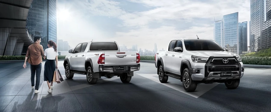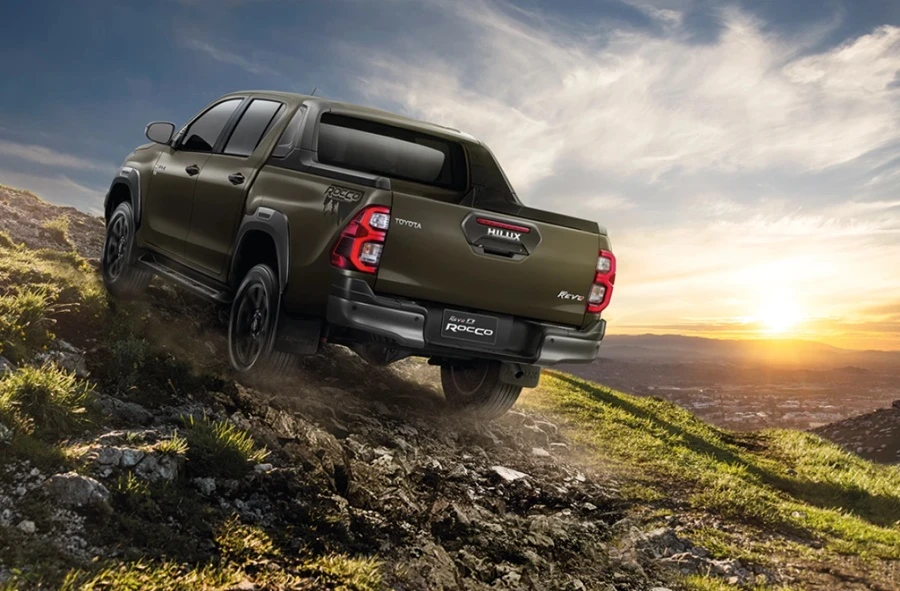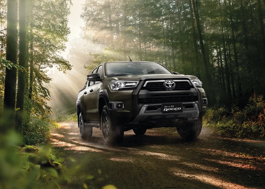 - Hilux Revo GR-Sport 4x4 นิยามความแกร่ง สปอร์ตพรีเมี่ยม กระบะสายพันธ์แกร่งรุ่นเรือธงที่ได้รับแรงบันดาลใจในการออกแบบจากรถแข่งออฟโรดแรลลี่ ด้วยสมรรถนะการขับขี่เป็นเลิศกับเครื่องยนต์ 2.8 GD Super Power ปรับจูนใหม่ 224 แรงม้า แรงบิด 550 นิวตัน-เมตร ปรับจูนช่วงล่าง เพิ่มความกว้างฐานล้อ (wide tread) ด้านหน้าขึ้นอีก 140 มม ด้านหลัง 155 มม และเปลี่ยนเบรกหลังเป็นดิสก์เบรก ช่วยเพิ่มเสถียรภาพในการขับขี่ ยึดเกาะถนนได้ดีมากขึ้น