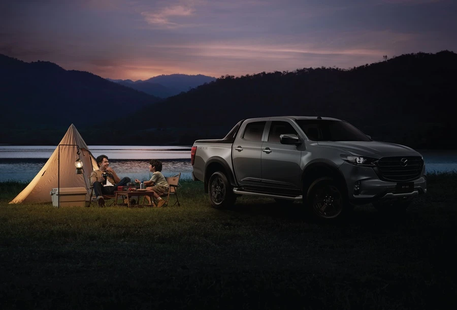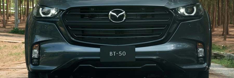 New Mazda BT-50 พร้อม...ให้คุณออกนำทุกเส้นทาง จับเครื่องยนต์ 3.0 ลิตร เทอร์โบ 190 แรงม้า แรงบิด 450 นิวตันเมตร ลงในรุ่นขับสองยกสูง Hi-Racer ทั้งรุ่นฟรีสไตล์แค็บและดับเบิ้ลแค็บ 4 ประตู มาพร้อมสีใหม่สีเทา ร็อค เกรย์ กระจังหน้า Signature Wing และชุดกันชนหน้าสีดำเงา ล้ออัลอยด์ 18 นิ้ว ภายในเบาะหนังทูโทนสีน้ำตาล-ดำ ติดตั้ง Sport Paddle Shift พร้อมระบบควบคุมความเร็วอัตโนมัติ ACC แบบ Stop & Go เปิดราคาจำหน่ายเริ่มต้น 7 แสนกว่าบาท ดอกเบี้ย 0.99% พร้อมฟรีประกันภัยชั้นหนึ่ง