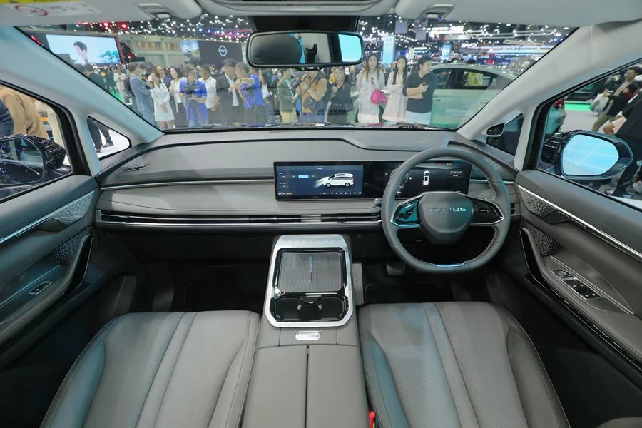 NEW MG MAXUS 7 มาจัดแสดงให้คนไทยได้สัมผัสกับคันจริงของ E-MPV ไซส์กลาง ขนาด 7 ที่นั่ง มาพร้อมฟังก์ชันและฟีเจอร์ที่ทันสมัย งานดีไซน์ที่โดดเด่นตามแบบฉบับของ MG MAXUS Series ทั้งงานออกแบบและฟังก์ชันการใช้งาน ไม่ว่าจะเป็น ประตูสไลด์ด้านข้างเปิดปิดด้วยไฟฟ้าพร้อมฝาท้ายไฟฟ้า ที่เปิดประตูแบบเก็บซ่อนในตัวรถ หลังคาพาโนรามิกซันรูฟ ภายในดูเรียบและหรู ด้วยโทนสีดำและสีน้ำตาล ดีไซน์คอนโซลหน้าแบบ Dual Layer พร้อมที่วางแก้ว และรองรับการชาร์จแบบไร้สาย เบาะคนขับปรับไฟฟ้า 6 ทิศทาง ห้องโดยสารให้ความสบายที่มากกว่า พร้อมที่นั่งแบบ Captain Seat ในแถวที่ 2 ที่โอบรับกระชับทุกสรีระ นอกจากนี้ ยังช่วยอำนวยความสะดวกสบายในการขับขี่และการใช้งานฟังก์ชันต่างๆ ด้วยหน้าจอแสดงผลอัจฉริยะแบบดิจิตอลขนาด 12.3 นิ้ว เชื่อมต่อกัน รวมถึงระบบเชื่อมต่อมัลติมีเดีย Apple CarPlay และ Android Auto และยังสามารถเปลี่ยนรถให้เป็นแหล่งพลังงานได้ด้วย