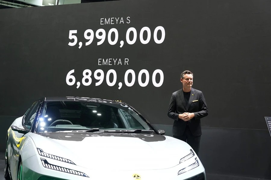 “นับเป็นโอกาสสำคัญที่แบรนด์จะเข้ามาทำตลาดรถยนต์ไฟฟ้าพรีเมียมเต็มตัวในปี 2567 กับในงาน Motor Show 2024 กับ การเปิดตัว “LOTUS EMEYA (โลตัส อี-เม-ย่า)” อย่างเป็นทางการครั้งแรกในประเทศไทยและ South East Asia และเป็นประเทศที่ 2 ในเอเชียแปซิฟิก ทั้งนี้เพื่อเป็นการตอกย้ำความแข็งแกร่งของแบรนด์ในตลาดรถสปอร์ตหรูด้วยมาตรฐานที่มีความแตกต่างตามแบบฉบับของ โลตัส คาร์ ด้วย Driving Dynamics ที่มาจาก DNA ของแบรนด์ และเพื่อเป็นการย้ำทิศทางของแบรนด์ในการเดินหน้ารุกตลาดรถไฟฟ้ากลุ่ม Premium อย่างเต็มรูปแบบ ด้วยไฮไลต์ที่น่าสนใจของ LOTUS EMEYA ซึ่งถือเป็นรถสปอร์ตซีดานไฟฟ้าล้วน 100% Hyper-GT with Dual-Motor ที่เร็วที่สุดในโลก เพื่อตอกย้ำทิศทางของแบรนด์ความเป็นที่สุดแห่งยนตรกรรมสปอร์ต ผู้นำแห่งการออกแบบยานยนต์ไฟฟ้าตามหลัก Aerodynamic ที่ได้ออกแบบการกระจายกำลังรถให้เท่ากัน 50:50 ทั้งด้านหน้าและด้านหลังได้อย่างดีเยี่ยม เพื่อให้เกิดความสมดุลในการทรงตัวที่ดีขณะขับขี่และการเข้าโค้งได้อย่างมั่นใจ ถือเป็นการยกระดับมาตรฐานใหม่ในรถไฟฟ้าซีดานรุ่นแรกของแบรนด์ พร้อมต่อยอดความเป็นเอกลักษณ์ตามแบบฉบับของ Lotus โดยนำเทคโนโลยีจากสนามสู่ถนน ด้วยระบบ DRS ช่วยจัดระบบไหลเวียนอากาศได้อย่างดี ตอบสนองการขับขี่ที่โฉบเฉี่ยว สปอร์ต เหมือนรถในสนามแข่ง F1 พร้อมทำลายสถิติใหม่กับอัตราการเร่งความเร็ว 0-100 กม./ชม. ใน 2.78 วินาที พร้อมจัดเต็มด้วยพละกำลังสูงสุด 905 แรงม้า ซึ่งถือเป็นรถที่แรงที่สุดในกลุ่มตลาดรถ EV ที่น่าจับตามองในตอนนี้