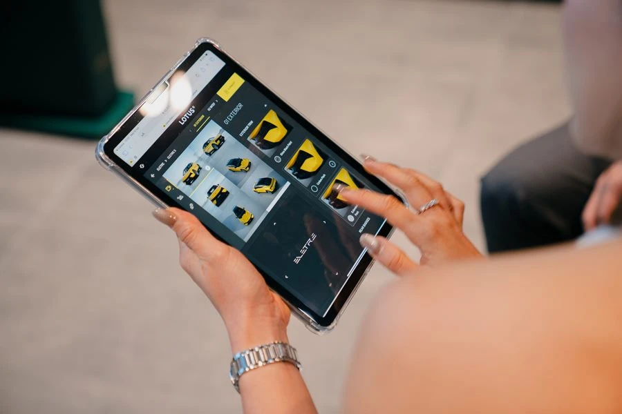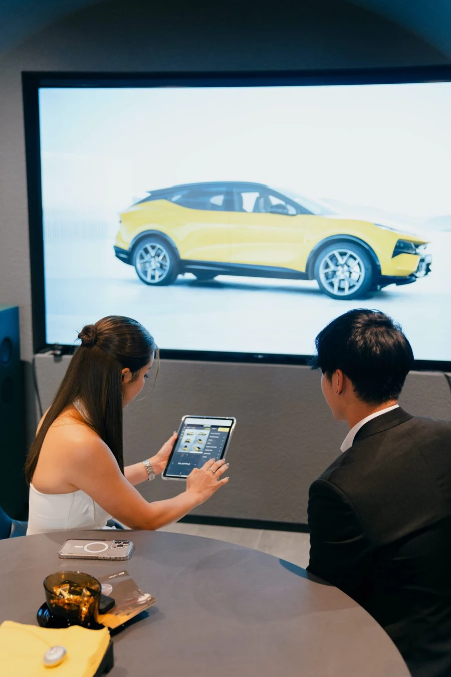 นำเสนอผ่านการแสดงผลด้วยเทคโนโลยี Unreal Engine เป็นการเรนเดอร์ภาพเสมือนจริงแบบเรียลไทม์ 3D โดยให้รายละเอียดที่มีความแม่นยำและเที่ยงตรงสูง ทั้งโทนสี ผิวสัมผัสของ Materials ต่าง ๆ ทั้งภายนอกและภายในรถ ให้ความรู้สึกเสมือนเห็นภาพรถในฝันได้อย่างสมจริง เพื่อให้การสร้างสรรค์รถเป็นไปได้มากกว่าที่คิด และเพลิดเพลินกับการเลือกสรรได้ตามความชื่นชอบ ด้วยออปชั่นที่หลากหลาย ครบครัน อีกทั้งได้ชมภาพเสมือนจริงของรถที่แสดงผลบนหน้าจอทันที ทั้งนี้ ด้วยความตั้งใจที่จะสร้างความประทับใจในการมอบประสบการณ์การดูแลเป็นพิเศษโดย Sale Consultant ที่คอยให้คำปรึกษาได้ตรงใจทุกความต้องการ อีกทั้งสามารถเลือกสรร Lotus Merchandise เป็นสินค้าที่ระลึกของทางแบรนด์อีกมากมาย ส่วนการรองรับสำหรับศูนย์บริการหลังการขาย (After Sale Service) และสำนักงานขายแบบครบวงจรจะอยู่ที่โชว์รูมสาขาแรกของ Lotus Cars Thailand ซึ่งเป็นสำนักงานใหญ่แห่งเดียวในประเทศไทย