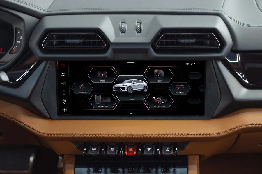 หน้าจอขนาดใหญ่ 12.3 นิ้วซึ่งใหญ่กว่ารุ่นเดิม ถูกติดตั้งไว้บริเวณกลางแผงหน้าปัดและมอบการแสดงผลกราฟิก Human Machine Interface (HMI) เวอร์ชันใหม่ที่ใช้งานได้ง่ายดายและเป็นธรรมชาติมากขึ้นเหมือนที่พบได้ในรุ่น Revuelto ทีมนักออกแบบ Lamborghini Centro Stile ยังให้ความสำคัญกับการออกแบบท่อลม โดยตกแต่งด้วยวัสดุอลูมิเนียมเคลือบผิวในรูปทรงตัว Y อันเป็นเอกลักษณ์ และยังหุ้มส่วนบานตกแต่ง แผงหน้าปัด เบาะนั่งด้วยวัสดุใหม่ นอกจากนี้ ยังออกแบบแผงปุ่มกดแบบกลไกเพื่อให้ได้สัมผัสของการกดที่สมจริง