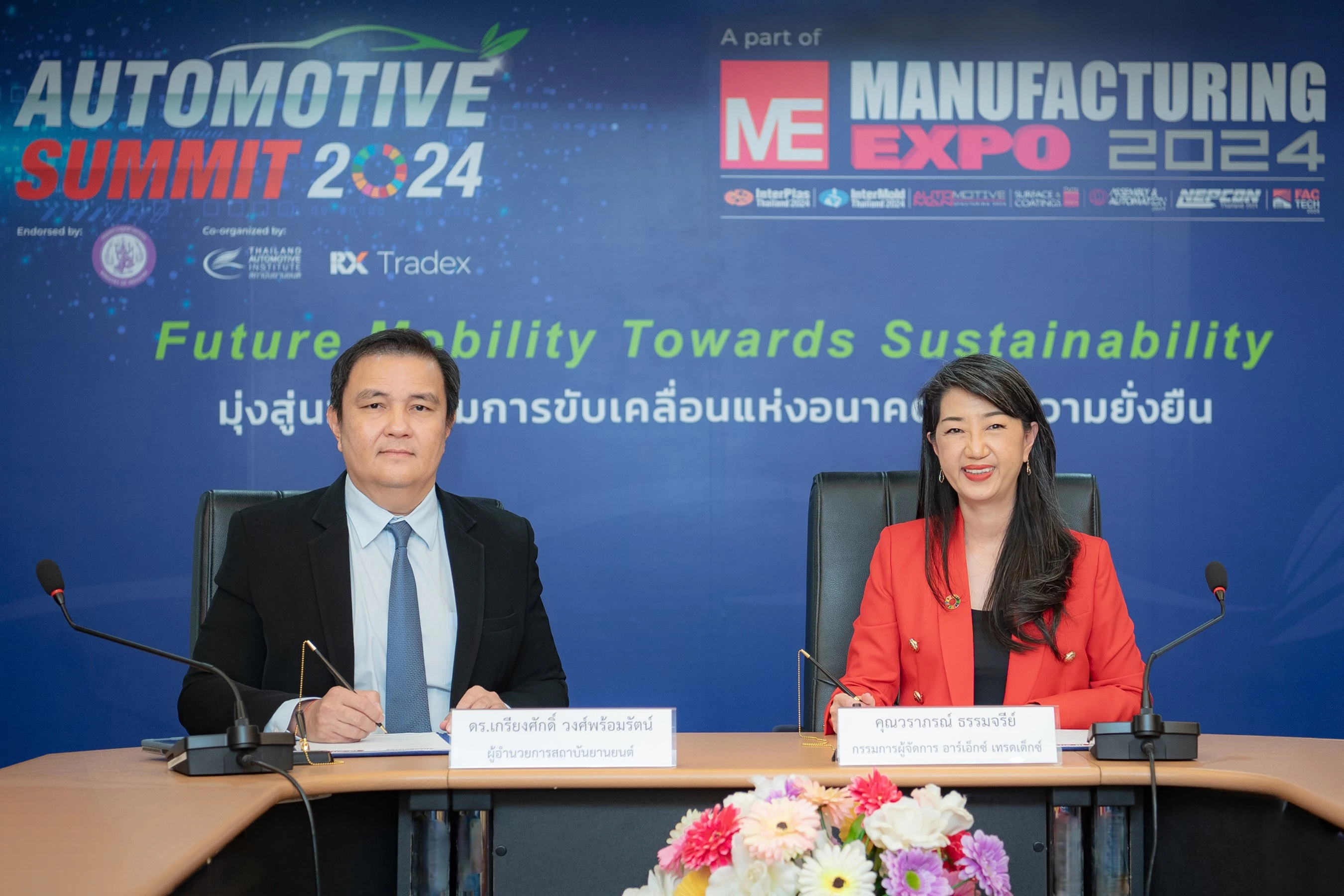 สถาบันยานยนต์ จับมือ อาร์เอ็กซ์ เทรดเด็กซ์ เดินหน้าร่วมพลิกโฉมอุตสาหกรรมยานยนต์ เตรียมรับมือการเปลี่ยนแปลงครั้งใหญ่ ผลักดันอุตสาหกรรมสู่นวัตกรรมการขับเคลื่อนแห่งอนาคตเพื่อความยั่งยืน ชี้ยานยนต์ไฟฟ้ามีแนวโน้มเติบโตขึ้นอย่างต่อเนื่อง หลังพบยานยนต์ไฟฟ้าจดทะเบียนใช้งานแล้วกว่าแสนคัน พร้อมชวนคนวงการยานยนต์เข้าร่วมแลกเปลี่ยนเรียนรู้เทคโนโลยีใหม่ ๆ พร้อมอัปเดตความเคลื่อนไหวของแวดวงยานยนต์ในงานสัมมนาใหญ่ประจำปี Automotive Summit 2024 19-20 มิถุนายนนี้ โดยจัดร่วมกับงาน Automotive Manufacturing ซึ่งเป็นส่วนหนึ่งของมหกรรม Manufacturing Expo (19-22 มิถุนายน) ที่ไบเทค