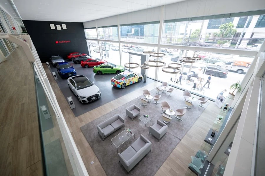 อาวดี้ สาขาถนนเพชรบุรีตัดใหม่ เป็นโชว์รูมแห่งแรกของ อาวดี้ ประเทศไทย ตั้งอยู่บนถนนเพชรบุรีตัดใหม่ ใจกลางเมือง เดินทางสะดวกสบาย ภายใต้แนวคิดใหม่ Audi Progressive Retail ลูกค้าสามารถเลือกชมและทดลองขับรถยนต์อาวดี้ได้ครบทุกเซกเมนต์ ไม่ว่าจะเป็นรถไฟฟ้า 100% รถ High Performance ตระกูล RS ด้านบริการหลังการขายมีสิ่งอำนวยความสะดวกสบายในการเข้าใช้บริการ พร้อมให้บริการลูกค้าแบบครบวงจร มีศักยภาพในการให้บริการมากถึง 780 งานซ่อมต่อเดือน โดยมีช่องซ่อมทั้งหมด 18 ช่อง โดยแบ่งเป็นช่องซ่อมรถยนต์สันดาป 15 ช่อง รถไฟฟ้า 3 ช่อง ทั้งยังมีช่างผู้ชำนาญการที่ผ่านการรองรับมาตรฐาน AUDI AG ให้บริการถึง 21 คน