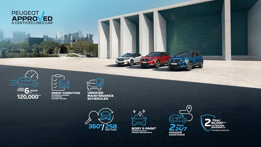 PEUGEOT APPROVED & CERTIFIED USED CAR ยกระดับราคาขายต่อรถยนต์ เปอโยต์ ให้เป็นมาตรฐาน พร้อมสร้างความอุ่นใจ ไร้กังวล สำหรับผู้ใช้รถยนต์ เปอโยต์ ทุกรุ่น