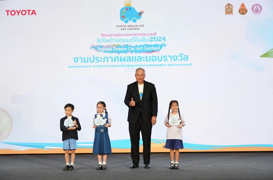 นายศุภกร รัตนวราหะ รองกรรมการผู้จัดการใหญ่ บริษัท โตโยต้า มอเตอร์ ประเทศไทย จำกัด และพลตำรวจเอก เพิ่มพูน ชิดชอบ รัฐมนตรีว่าการกระทรวงศึกษาธิการ ร่วมมอบรางวัลผู้ชนะการประกวดภาพวาดระบายสีในโครงการ โตโยต้า รถยนต์ในฝัน TOYOTA Dream Car Art Contest 2024 เมื่อวันที่ 6 มิถุนายน ศกนี้ ณ TOYOTA ALIVE ถ.บางนา-ตราด กม. 3