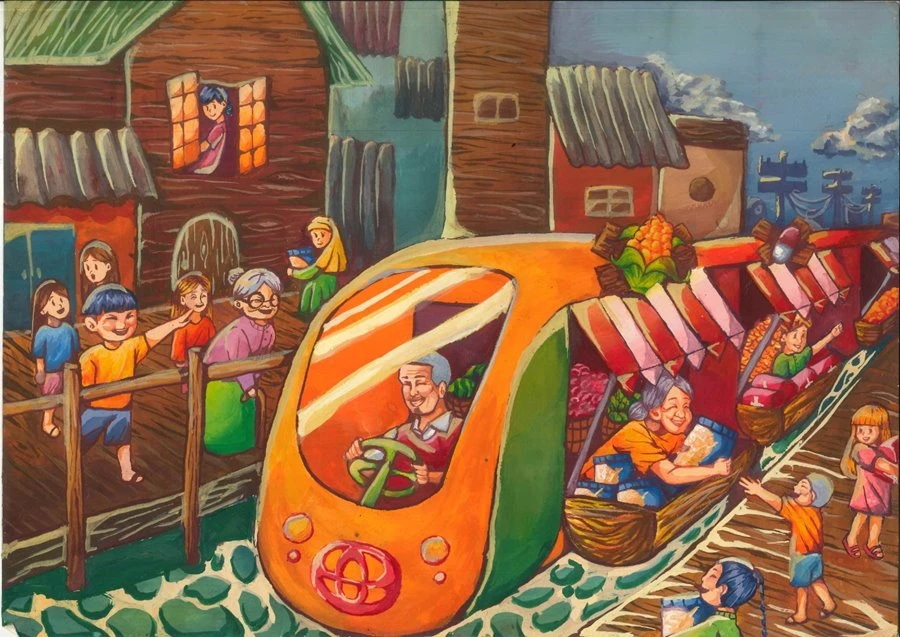รางวัลรองชนะเลิศ อันดับ 1 : ผลงานชื่อ รถไฟทางน้ำ พิทักษ์ความยากไร้
