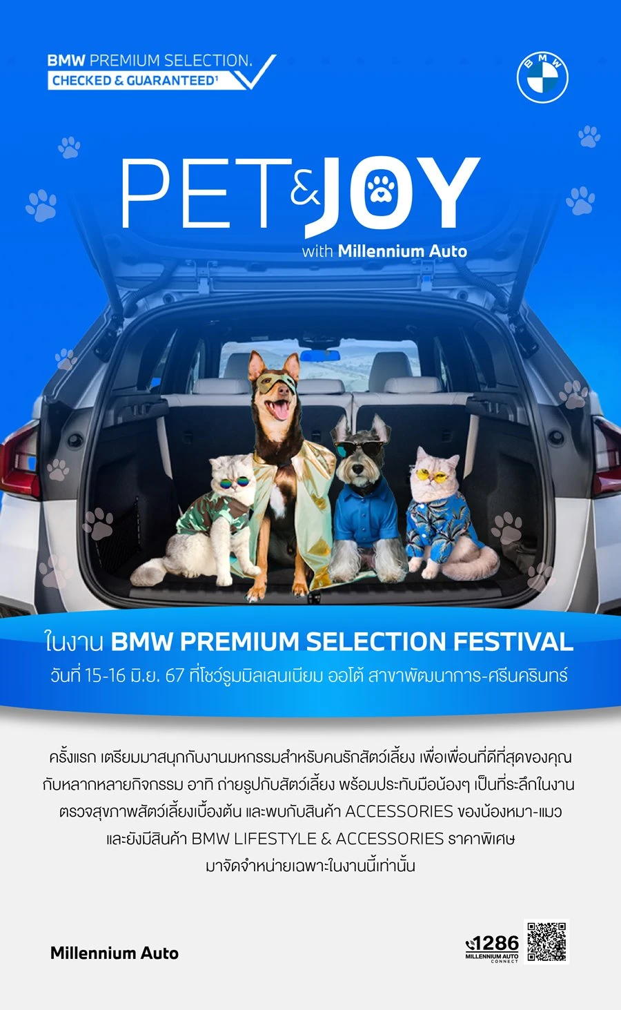 - 15-16 มิถุนายน Pet & Joy พบกับโชว์รูม Pet Friendly กับมหกรรมสำหรับคนรักสัตว์เลี้ยง เพื่อเพื่อนที่ดีที่สุดของคุณ กับกิจกรรมสุดโปรด พร้อมสินค้าและแบรนด์พันธมิตรชั้นนำ อาทิ Doggu, โรงพยาบาลสัตว์คชาเว็ท, Furrdaypet, Dr. Puppee Pure Joy, Mastervet Animal Hospital และ Sukina Petto ที่ มิลเลนเนียม ออโต้ สาขาพัฒนาการ-ศรีนครินทร์