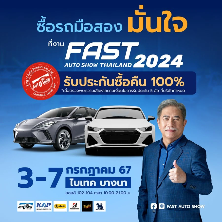 ส่วนทางด้าน นายพัฒนเดช อาสาสรรพกิจ ประธานจัดงาน ฟาสต์ ออโต โชว์ ไทยแลนด์ 2024 เผยว่า จากการจัดงานปีนี้เป็นปีที่ 12 งานของเราช่วยกระตุ้นตลาดรถยนต์ในช่วงกลางปีได้เป็นอย่างดี โดยเฉพาะยอดขายภายในงานของกลุ่มรถใช้แล้วในปีที่ผ่านมาเป็นที่น่าพอใจ เพราะผู้บริโภคที่เลือกซื้อรถในงานเป็นลูกค้ากลุ่มมีกำลังซื้อ มีความพร้อม อีกทั้งการรับประกันซื้อคืนยังสร้างความมั่นใจ และส่งเสริมให้เลือกซื้อรถยนต์มือสองได้ง่ายขึ้น โดยที่มาของการรับประกันรถยนต์ใช้แล้วในงาน ฟาสต์ ออโต โชว์ ไทยแลนด์ เริ่มตั้งแต่การจัดงานครั้งแรกในปี 2012 เกิดจากแนวคิดที่ต้องการสร้างความเชื่อมั่นให้กับผู้บริโภคและสร้างมาตรฐานการรับประกันของธุรกิจรถยนต์ใช้แล้วให้เป็นที่แพร่หลาย ผมจึงได้มีการตกลงและทำสัญญากันในกลุ่มผู้ประกอบการรถยนต์ใช้แล้วที่เข้ามาร่วมงานกันว่า เราจะช่วยกันลบจุดอ่อนของธุรกิจรถมือสอง ที่เกิดจากความไม่มั่นใจในคุณภาพของสินค้าและบริการ จนทำให้ลูกค้าลังเลไม่กล้าตัดสินใจซื้อ งาน ฟาสต์ ออโต โชว์ ไทยแลนด์ จึงเป็นงานแรก ที่สร้างความเชื่อมั่นให้ผู้บริโภคด้วยการรับประกันซื้อคืน 100% หากรถมือสองที่ซื้อในงานผิดเงื่อนไขที่กำหนดไว้ใน 5 ข้อ คือ ไม่ไฟไหม้ ไม่จมน้ำ ไม่ตัดต่อ ไม่ชนหนัก และไม่สามารถจดทะเบียนได้ถูกต้องตามกฎหมาย