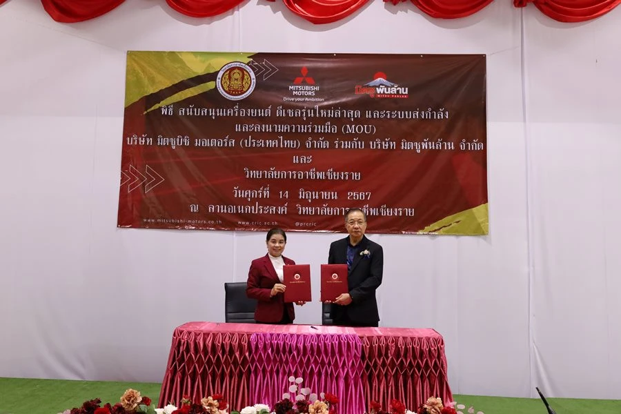 นายสมเกียรติ์ นิมิตรุ่งทวี กรรมการผู้จัดการ บริษัท มิตซูพันล้าน จำกัด กล่าวว่า “การเติบโตของอุตสาหกรรมยานยนต์ได้เพิ่มความต้องการบุคลากรที่มีทักษะ โดยเฉพาะช่างเทคนิคยานยนต์ มิตซูพันล้านจึงร่วมมือกับวิทยาการอาชีพเชียงราย ผ่านการลงนามบันทึกข้อตกลงความร่วมมือ (MOU) เพื่อสร้างความมั่นคงในการพัฒนาบุคลากรที่มีคุณภาพในระบบนิเวศอุตสาหกรรมยานยนต์ของประเทศไทย โดยจะสนับสนุนพันธกิจทางการศึกษาของวิทยาลัยและมอบประสบการณ์การทำงานจริงให้กับนักเรียน นอกจากนี้ ครูผู้สอนจะได้รับการฝึกอบรมเพื่อให้สามารถถ่ายทอดความรู้ได้อย่างมีประสิทธิภาพและเพื่อให้ได้สัมผัสสมรรถนะของสุดยอดยนตรกรรมมิตซูบิชิ ทางมิตซูพันล้าน ยังได้นำรถยนต์ มิตซูบิชิ เอ็กซ์แพนเดอร์ ครอส เอชอีวี, มิตซูบิชิ ปาเจโร สปอร์ต รุ่นปี 2024 และ ออล-นิว มิตซูบิชิ ไทรทัน แอทลีท รุ่นขับเคลื่อน 4 ล้อ มาให้ทุกท่านได้ทดลองขับภายในงานอีกด้วย”