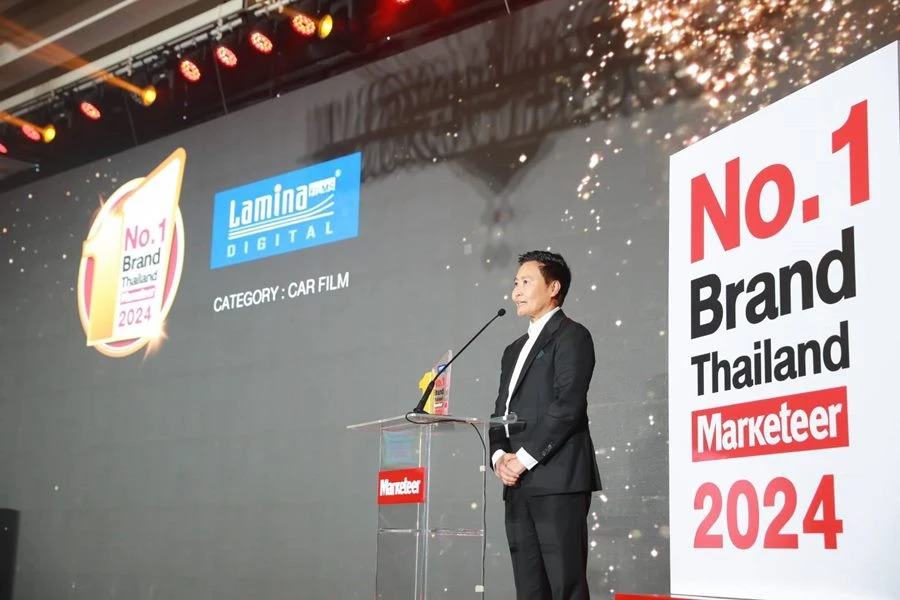 ลามิน่าฟิล์ม ตอกย้ำความเป็นผู้นำฟิล์มกรองแสงรถยนต์และอาคาร คว้ารางวัล แบรนด์ยอดนิยมอันดับ 1 ของประเทศไทย ประจำปี 2567 หรือ Marketeer No.1 Brand Thailand 2024 ต่อเนื่องปีที่ 9 ตอกย้ำความแข็งแกร่งของลามิน่าที่หนึ่งในใจผู้บริโภค จัดโดยมาร์เก็ตเธียร์ กรุ๊ป ร่วมกับ บริษัท มาร์เก็ตติ้ง มูฟ จำกัด