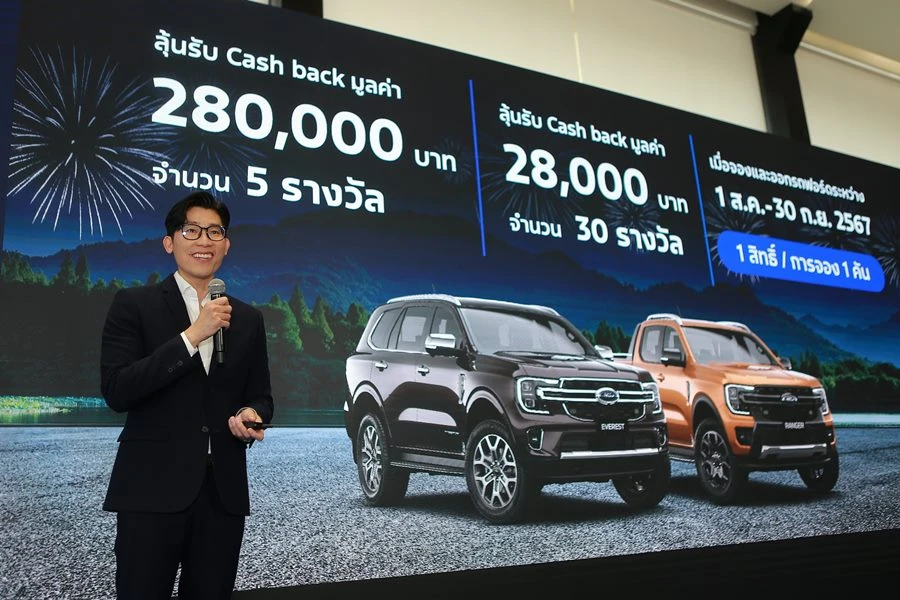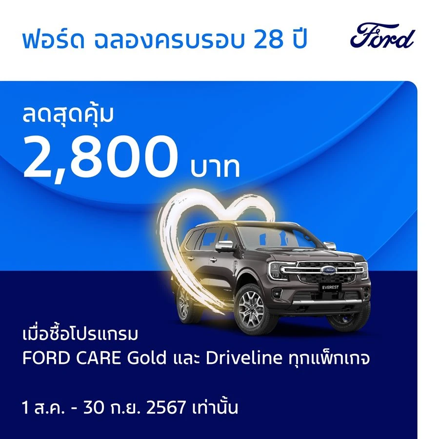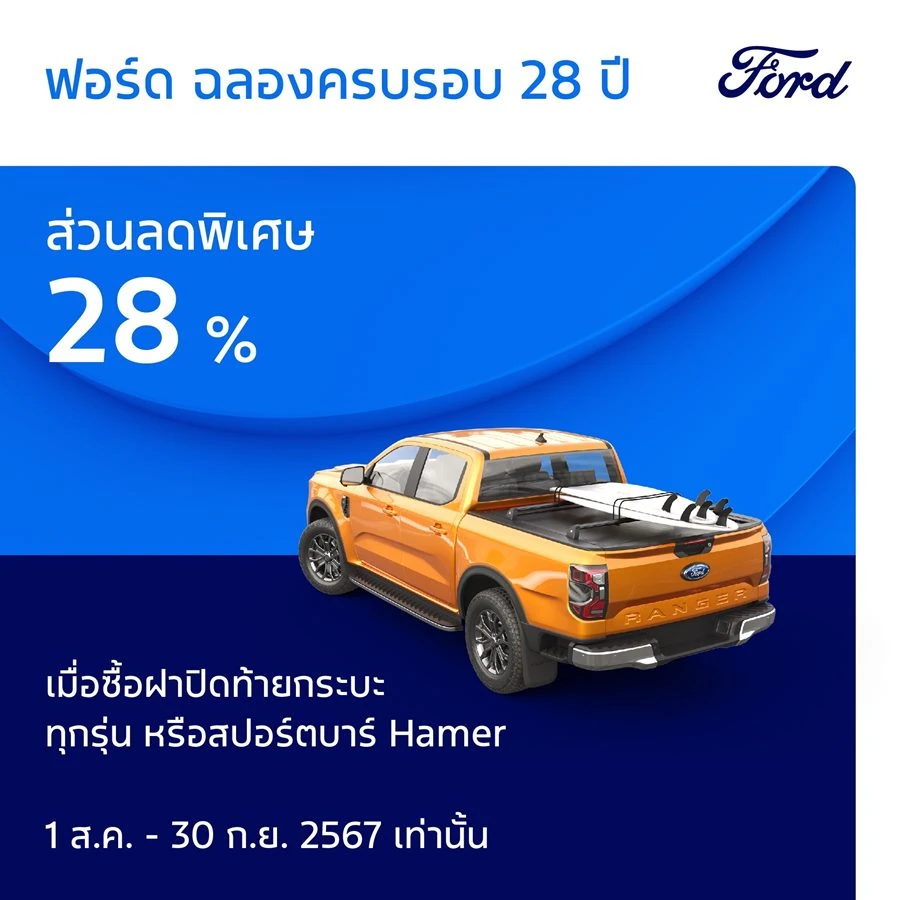 นอกจากนี้ ในโอกาสครบรอบ 28 ปี ของการดำเนินธุรกิจของฟอร์ดในประเทศไทย ฟอร์ดยังได้เปิดตัวแคมเปญสุดยิ่งใหญ่ Ford 28th Anniversary มอบสิทธิ์ลุ้นรับเงินคืนรวมมูลค่ากว่า 2,240,000 บาท เมื่อจองและออกรถฟอร์ดระหว่างวันที่ 1 สิงหาคม ถึง 30 กันยายน 2567 ประกอบด้วย