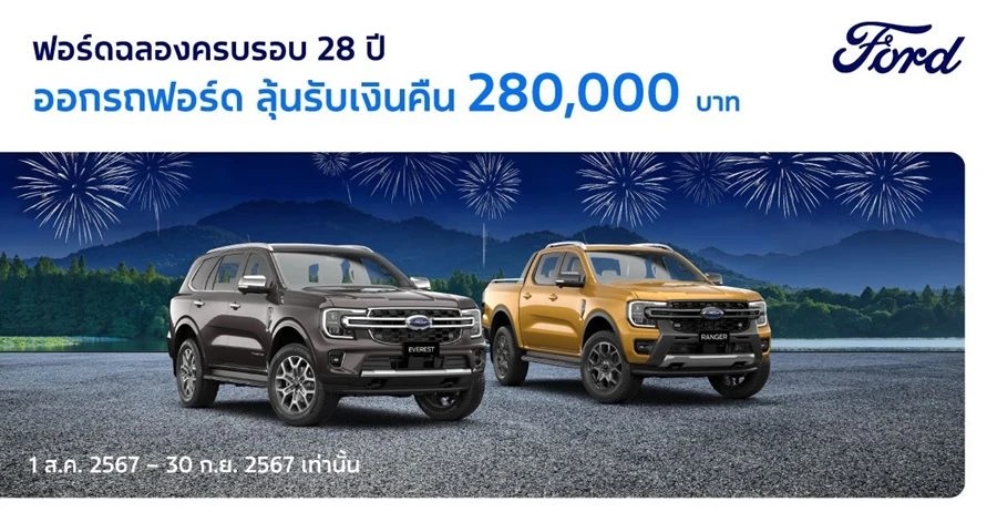 Ford 28th Anniversary มอบข้อเสนอพิเศษลุ้นรับเงินคืนและข้อเสนอสุดคุ้มด้านการบริการจำนวนมาก