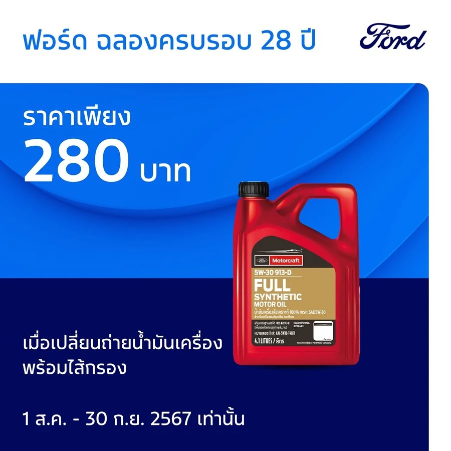 นอกจากนี้ แคมเปญ Ford 28th Anniversary ยังมาพร้อมข้อเสนอสุดคุ้มด้านบริการที่หลากหลายระหว่างเดือนสิงหาคมถึงกันยายน 2567 ให้กับลูกค้าครอบครัวฟอร์ด ได้แก่