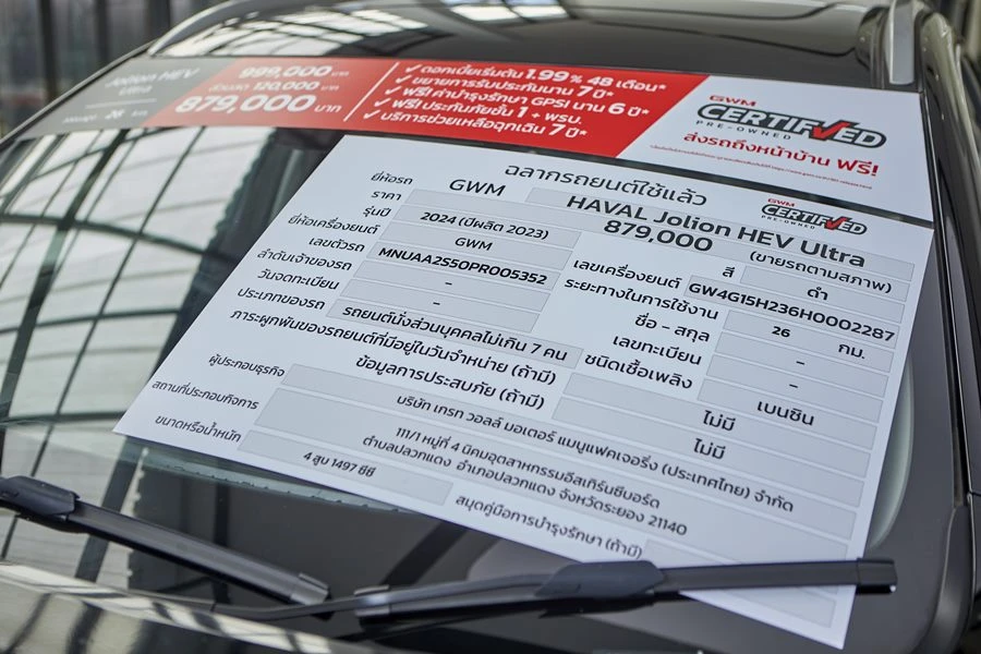 GWM Certified Day ที่จะจัดขึ้นในระหว่างวันที่ 13 – 19 สิงหาคม 2567 นี้ ทาง เกรท วอลล์ มอเตอร์ ขนทัพรถยนต์พลังงานใหม่ใช้แล้วกว่า 120 คัน ได้แก่ GWM HAVAL H6 PHEV จำนวน 30 คัน GWM HAVAL H6 HEV จำนวน 57 คัน และ GWM HAVAL JOLION HEV รุ่น ULTRA จำนวน 33 คัน อวดโฉมให้ผู้ที่สนใจได้สัมผัสกันทั่วทั้ง 4 จุดสำคัญกระจายทั่วกรุงเทพฯ
