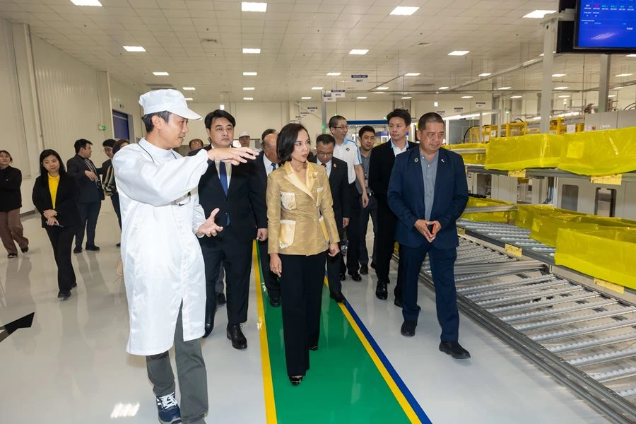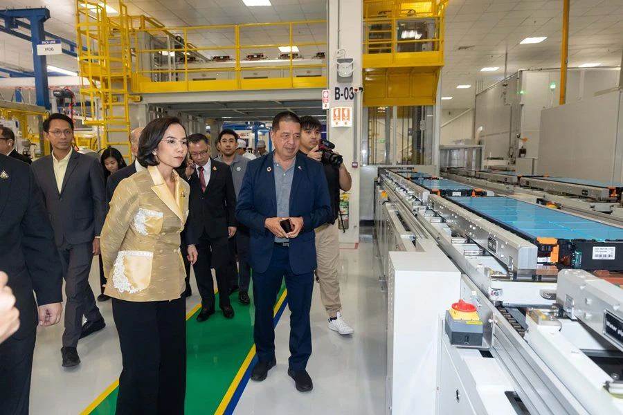 นายนฤตม์ เทอดสถีรศักดิ์ เลขาธิการคณะกรรมการส่งเสริมการลงทุน (บีโอไอ) พร้อมคณะและหน่วยงานที่เกี่ยวข้อง ร่วมเปิดไลน์การผลิตรถไฮบริดรุ่นล่าสุด