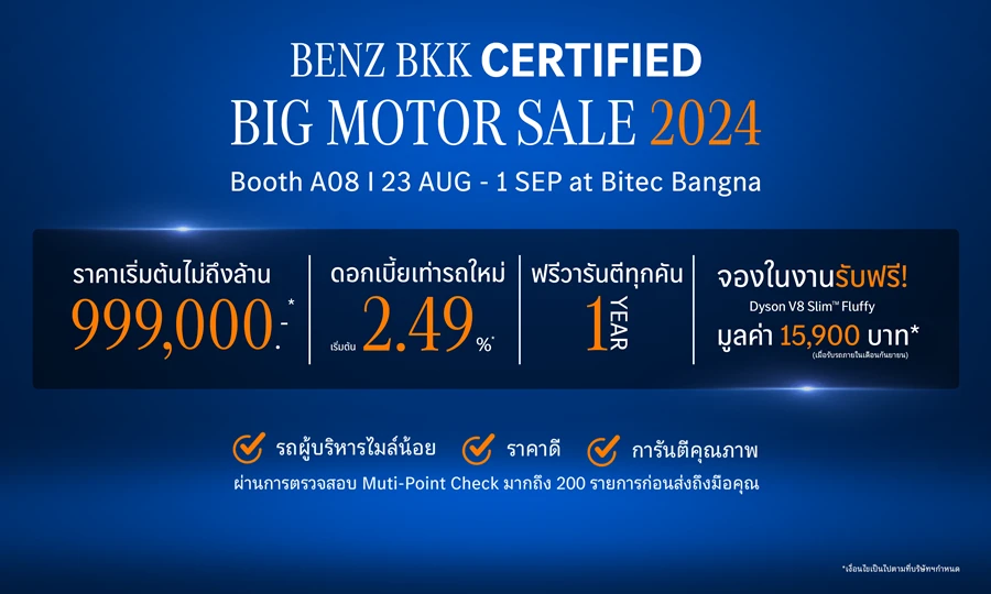 www.benzbkkcertified.com และแฟนเพจเฟซบุ๊ก Mercedes-Benz Certified by Benz BKK หรือโทร. 088-811-1888