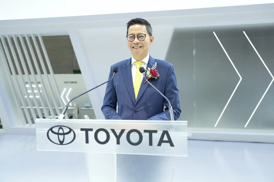“และเรายังมีรถยนต์ยอดนิยมอีกหลายรุ่น ทั้ง Yaris ATIV, Yaris Hatchback และ Fortuner อีกทั้ง ยังมีรถยนต์อเนกประสงค์ 7 ที่นั่ง ที่สุดของเพื่อนคู่ใจสายครอบครัวระดับพรีเมียม INNOVA ZENIX และ Veloz มาให้ชมภายในงานนี้ด้วย ในส่วนของรถกระบะ นำทัพโดย Hilux Revo รุ่นปรับปรุงใหม่ ปี 2024 เริ่มจาก Hilux Revo GR-Sport 4x4 กระบะรุ่นเรือธงสมรรถนะเหนือชั้น ที่ผ่านบทพิสูจน์บนเส้นทางสุดทรหดในประเทศออสเตรเลีย และสามารถคว้าชัยชนะจากการแข่งขันสุดโหดในรายการ Asia Cross Country ที่เพิ่งจบไปเมื่อวันที่ 17 สิงหาคมที่ผ่านมา รุ่นต่อมาคือ Hilux Revo-D Prerunner และ Hilux Revo Smart Cab Prerunner ที่โดดเด่นด้วยช่วงล่างซับแรงกระแทกดีเยี่ยม มอบความสบายให้ทุกการเดินทาง และยังมี Hilux Revo Z-edition แต่งสนุก ถูกใจสายแต่งรถแน่นอนครับ สำหรับผู้ประกอบการต่างๆ เราขอนำเสนอ Hilux Champ กับแพ็กเกจต่อเติมรถ สร้างธุรกิจเคลื่อนที่ในฝันได้ ครบ จบ ในที่เดียว”