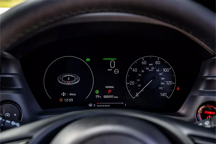 สำหรับภายในของ 2025 HR-V e:HEV สเปคยุโรปยังคงใช้ดีไซน์ภายในแบบเดิม เราจะเห็นมาตรวัดดิจิทัลขนาด 7 นิ้ว และจออินโฟเทนเมนต์ขนาด 9 นิ้ว ส่วนที่เปลี่ยนแปลงไปคือคอนโซลกลาง ซึ่งให้พื้นที่สำหรับแท่นชาร์จไร้สายมากขึ้นและปรับเปลี่ยนให้เข้าตามสรีรศาสตร์มากยิ่งขึ้นด้วย
