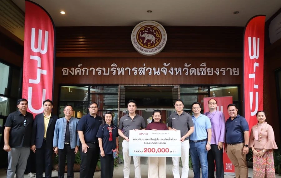 ร่วมแสดงความห่วงใยและส่งต่อกำลังใจให้พี่น้องชาวไทย มอบเงินช่วยเหลือผู้ประสบอุทกภัยในจังหวัดเชียงรายจำนวน 200,000 บาท ผ่านองค์การบริหารส่วนจังหวัดเชียงราย โดยได้รับเกียรติจาก นางอทิตาธร วันไชยธนวงศ์ นายกองค์การบริหารส่วนจังหวัดเชียงราย (ที่ 7 จากซ้าย) เป็นผู้แทนรับมอบและบริหารจัดการเพื่อการจัดหาสิ่งของที่จำเป็นสำหรับชุมชน ตอกย้ำความมุ่งมั่นของทั้งสองบริษัทที่จะดูแลและเติบโตเคียงข้างสังคมอย่างยั่งยืน