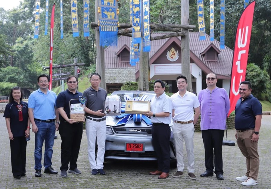 และในโอกาสเดียวกันนี้ บริษัท บีวายดี ออโต้ (ประเทศไทย) จํากัด นำโดย นายหลิว เสวียเลี่ยง ผู้จัดการทั่วไป ฝ่ายขาย บีวายดี ออโต้ เอเชียแปซิฟิก (ที่ 8 จากซ้าย) และบริษัท เรเว่ ออโตโมทีฟ จำกัด ผู้จัดจำหน่ายและให้บริการหลังการขายรถยนต์พลังงานไฟฟ้า BYD อย่างเป็นทางการในประเทศไทย นำโดย นายประธานวงศ์ พรประภา ประธานเจ้าหน้าที่บริหาร กลุ่มธุรกิจเรเว่ (ที่ 6 จากซ้าย)