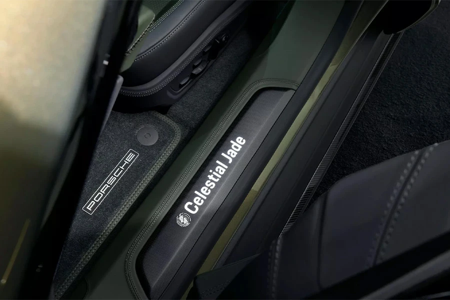 สำหรับชื่อรุ่น Celestial Jade มีที่มาจากอัญมณีล้ำค่าที่เปล่งประกาย เพื่อสร้างสิ่งนี้ขึ้นมา Porsche จึงสร้างสีพิเศษที่ไม่เคยทำมาก่อน คือการผสานสี Chromaflair ทั้งสองสีด้วยการไล่เฉดให้เข้ากัน
