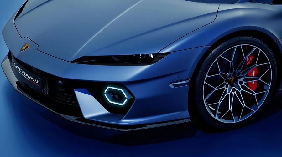 ภาษาการออกแบบของลัมโบร์กีนีถูกต่อยอดเพื่อสร้างสรรค์ดีไซน์ไฟหกเหลี่ยม Daytime Running Light (DRL) ระดับซิกเนเจอร์รูปแบบใหม่ซึ่งโดดเด่นสะดุดตาแม้มองจากกระยะไกล โดยแนวคิดรูปหกเหลี่ยมยังถือเป็นธีมการออกแบบหลักของทั้งตัวรถ ซึ่งพบได้ทั้งในส่วนตัวถังหลัก ช่องลมเข้าด้านข้าง ไฟท้าย และท่อไอเสียรูปหกเหลี่ยมอันน่าทึ่ง “ไฟหกเหลี่ยมระดับซิกเนเจอร์อันเป็นเอกลักษณ์นี้ การันตีว่า Temerario จะเป็นที่จดจำได้ทันทีในกลุ่มรถลัมโบร์กินี และยังมองเห็นได้อย่างชัดเจนแม้ในระยะไกล” มร.มิตจา โบร์เคิร์ต เน้นย้ำ รูปหกเหลี่ยมทางเรขาคณิตยังเป็นหนึ่งในสัญลักษณ์อันโดดเด่นที่สุดของลัมโบร์กินีมาตั้งแต่ทศวรรษ 1960