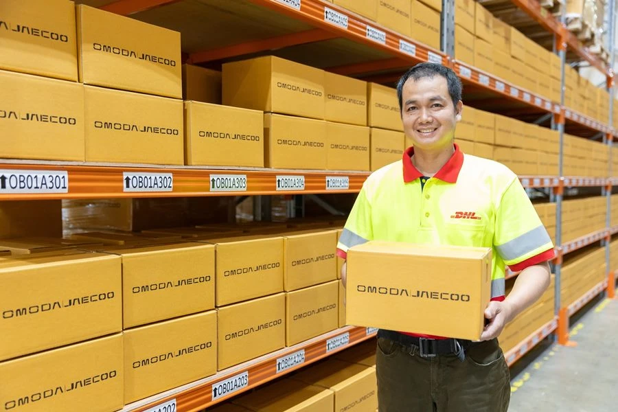 คลังอะไหล่ของโอโมดา แอนด์ เจคู ตั้งอยู่ที่ ดีเอชแอล บางนาโลจิสติกส์แคมปัสในพื้นที่จังหวัดสมุทรปราการ ด้วยพื้นที่จัดเก็บขนาดกว่า 1,000 ตารางเมตร ทำให้สามารถรองรับปริมาณการขนส่งอะไหล่และชิ้นส่วนรถยนต์ได้ตั้งแต่ 3,000 – 80,000 ชิ้นต่อเดือน และยังสามารถปรับเปลี่ยนขยายได้ตามความต้องการที่เพิ่มขึ้นในอนาคต โดยคลังอะไหล่แบ่งออกเป็น 3 ส่วนหลัก ประกอบด้วย (1) ส่วนอะไหล่ขนาดใหญ่ที่วางบนพาเลทโดยไม่ใช้ชั้นวาง (Block stack) อาทิ ชุดขับเคลื่อน เป็นต้น (2) ส่วนอะไหล่ที่วางบนชั้นวาง (Rack and Shelving) อาทิ อุปกรณ์ไฟฟ้าต่าง ๆ อะไหล่ที่เปลี่ยนตามรอบการบำรุงรักษา เป็นต้น และ (3) ส่วนอะไหล่ของรถอีวี (EV Storage) อาทิ แบตเตอรี่ไฟฟ้าแรงดันสูง เป็นต้น โดยมีระบบส่งต่อข้อมูลความต้องการอะไหล่และชิ้นส่วนจากผู้จำหน่ายทั่วประเทศมายังคลังอะไหล่ของดีเอชแอล ผ่านระบบ API Interface ระหว่าง SAP ของ Chery และ MAWM (API ของ ดีเอชแอล) ทำให้ทั้งทางผู้จำหน่าย คลังสินค้า และโอโมดา แอนด์ เจคู สามารถติดตามสถานะสินค้าคงคลังได้แบบเรียลไทม์ และสามารถใช้ระบบที่เชื่อมถึงกันสั่งสินค้าเข้ามาเติมในคลังของทั้งผู้จำหน่าย และคลังของโอโมดา แอนด์ เจคูเองได้อย่างทันท่วงที อีกทั้งยังสามารถใช้ข้อมูลนี้ในการคาดการณ์ความต้องการและสั่งสินค้าคงคลังเพื่อให้มีอะไหล่ถูกต้องและเพียงพอแก่ลูกค้าอยู่เสมอ ทั้งนี้ คลังอะไหล่ของโอโมดา แอนด์ เจคู ยังได้รับรองมาตรฐานการจัดการระดับสากลด้วยมาตรฐาน ISO 9002:2015, ISO 14001:2015 และ ISO 45001:2018 อีกด้วย