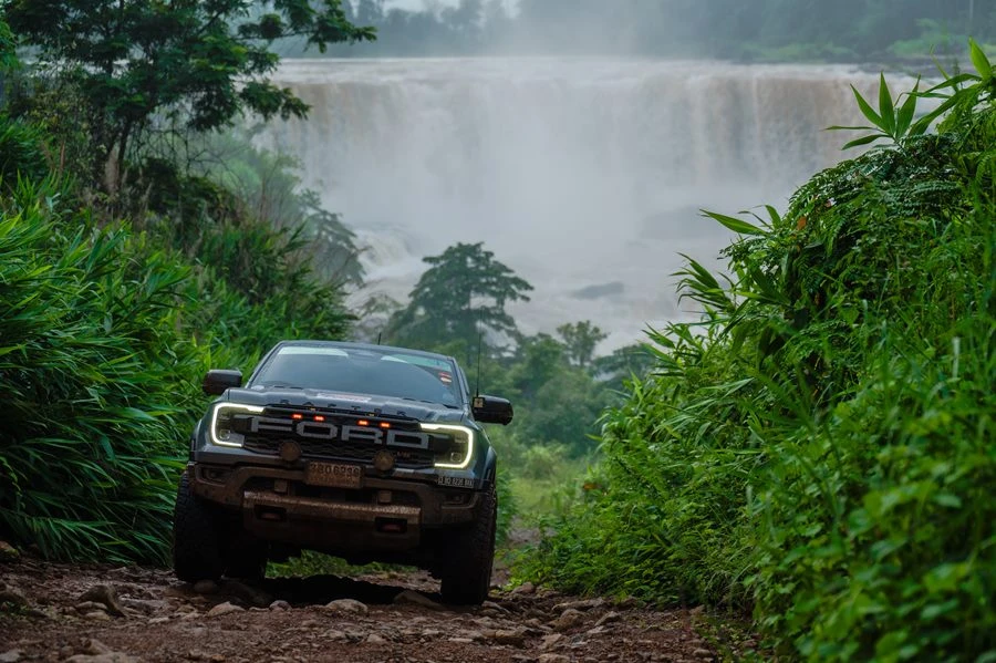 จากอุบลราชธานี คาราวานขับผ่านเส้นทางธรรมชาติที่ท้าทายทั้งหิน กรวด ลูกรัง โคลน รวมถึงการลุยน้ำข้ามลำธารมุ่งหน้าสู่เมืองอัตตะปือ ประเทศลาว โดยได้ทดสอบระบบขับเคลื่อน 4 ล้อและโหมดการขับขี่ของฟอร์ด เรนเจอร์ แร็พเตอร์ จุดหมายสำคัญคือการชมความยิ่งใหญ่ของน้ำตกแซพระ และน้ำตกแซป่องไล ซึ่งเป็นน้ำตกขนาดยักษ์และแหล่งท่องเที่ยวอันซีนของลาวใต้ ด้วยความสูงถึง 100 เมตร และกว้าง 120 เมตร ผู้ร่วมทริปได้สัมผัสกับความงดงามของสายน้ำที่ไหลลงมาอย่างอลังการราวกับม่านสีขาว พร้อมกับละอองน้ำและเสียงกึกก้องอย่างน่าประทับใจ
