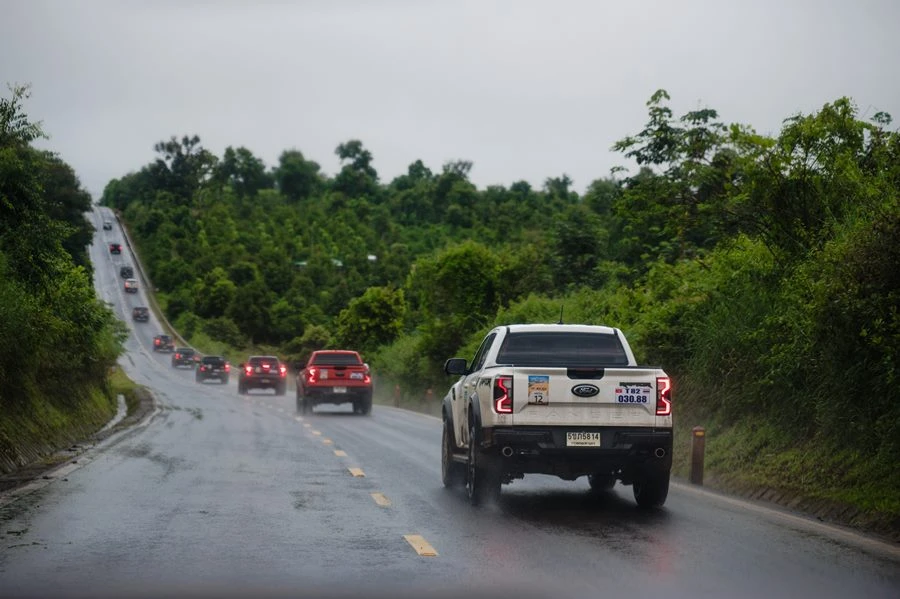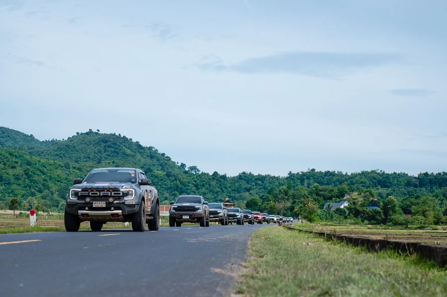 คาราวานเริ่มต้นออกเดินทางจากจังหวัดอุบลราชธานี ด้วยการขับบนถนนทางเรียบ ผู้ขับขี่ได้สัมผัสถึงความสะดวกสบายภายในห้องโดยสาร ทั้งเบาะหนังและหนังสังเคราะห์เฉพาะแบบ Raptor หน้าจอแสดงผลแบบสัมผัส Multi-Touch ขนาด 12 นิ้ว กล้องมองรอบคัน 360 องศา ที่ช่วยให้มองเห็นอุปสรรคได้รอบทิศทาง เพิ่มความมั่นใจในทุกการเดินทาง รวมถึงการใช้ระบบควบคุมความเร็วแบบรักษาระยะห่างอัตโนมัติ พร้อมระบบ Stop & Go และระบบช่วยควบคุมรถให้อยู่ในช่องทาง เพิ่มความปลอดภัยและความสะดวกสบายในการขับขี่ เพลิดเพลินไปกับเครื่องเสียง Bang & Olufsen® ในฟอร์ด เรนเจอร์ แร็พเตอร์ รุ่นเครื่องยนต์เบนซิน 3.0 ลิตร ที่มอบความบันเทิงในระหว่างการเดินทางได้แบบเต็มอิ่ม ระบบสั่งงานด้วยเสียง SYNC® 4A ที่รองรับ Apple CarPlay® และ Android Auto™ แบบไร้สาย ซึ่งทั้งหมดนี้ช่วยยกระดับประสบการณ์การขับขี่ให้สมบูรณ์แบบยิ่งขึ้น