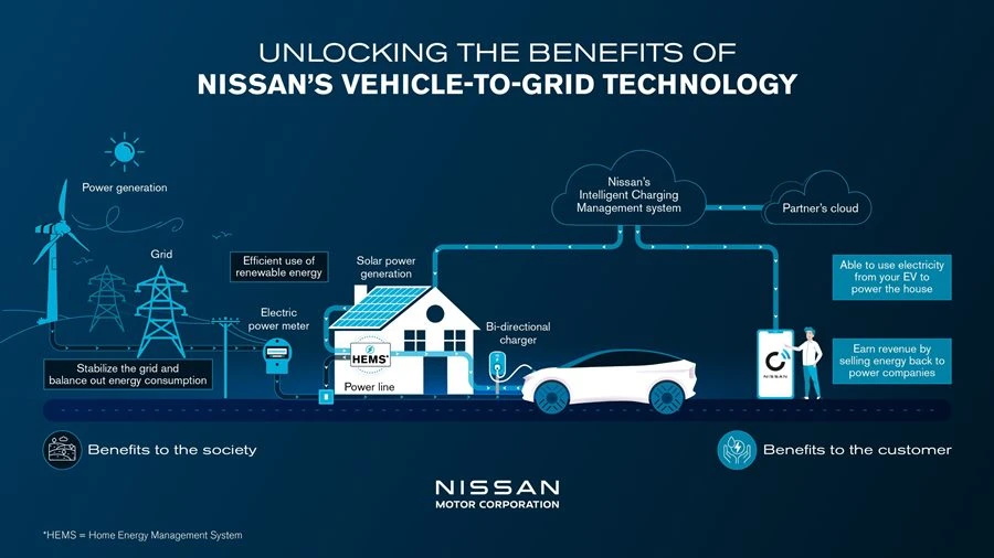 ซึ่งนอกจากจะลดต้นทุนในการเข้าถึงแล้ว ระบบการใช้พลังงานไฟฟ้าจากรถยนต์กลับเข้าสู่ระบบจ่ายไฟฟ้า (V2G) ของ นิสสันยังช่วยให้ลูกค้าควบคุม และมีความยืดหยุ่นในการใช้พลังงานของตนเองได้อย่างสมบูรณ์ผ่านแอปพลิเคชันอีกด้วย