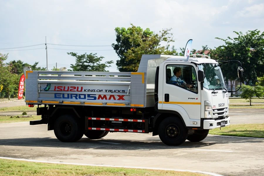พร้อมกันนี้อีซูซุขอแนะนำรถบรรทุกรุ่นใหม่ ISUZU KING OF TRUCKS EURO 5 MAX…ขีดสุดทุกมิติขนส่ง มาตรฐานไอเสียยูโร 5 เป็นมิตรต่อสิ่งแวดล้อม ตอบสนองนโยบายรัฐบาล โดยไม่ต้องเติมน้ำยาบำบัดไอเสีย เช่น AdBlue® หรือน้ำยาอื่น ๆ ตลอดการใช้งาน แต่ยังคงให้ประสิทธิภาพดีเยี่ยม ทั้งด้านสมรรถนะและการประหยัดน้ำมันที่เหนือชั้น และสามารถลดค่าใช้จ่ายที่ไม่จำเป็นให้แก่ผู้ประกอบการ นอกจากข้อที่กล่าวมา บุคลากร โดยเฉพาะพนักงานขับรถที่มีทักษะที่ดีจะมีส่วนช่วยในการพัฒนาการขนส่งให้มีประสิทธิภาพมากยิ่งขึ้นเช่นกัน”