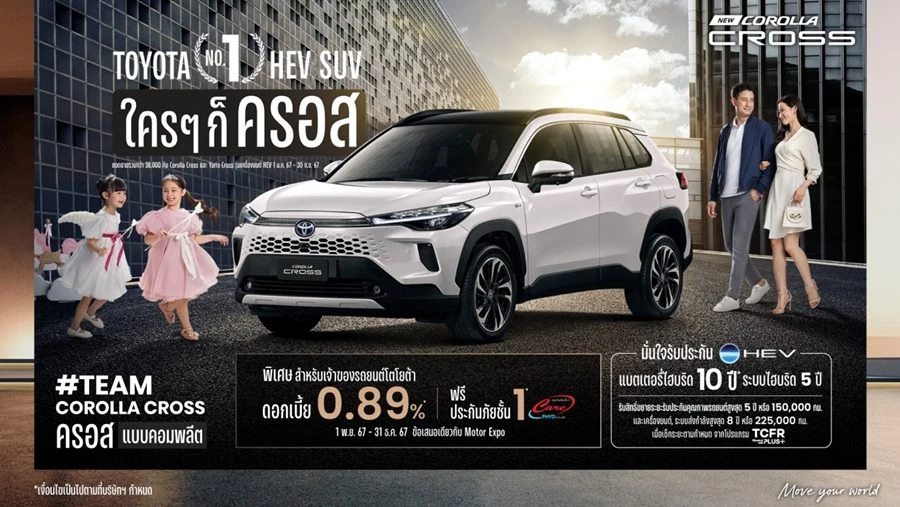 บริษัท โตโยต้า มอเตอร์ ประเทศไทย จำกัด ตอกย้ำความเป็นผู้นำด้านยนตรกรรมไฮบริดภายใต้คอนเซปต์ TOYOTA TRUSTED HYBRID กับเทคโนโลยีไฮบริดของโตโยต้าที่สร้างชื่อเสียงและความไว้วางใจในประเทศไทย ผสานระหว่างมอเตอร์ไฟฟ้าและเครื่องยนต์อย่างลงตัว มอบสมรรถนะการขับขี่ยอดเยี่ยม เพิ่มประสิทธิภาพการประหยัดเชื้อเพลิง และเป็นมิตรต่อสิ่งแวดล้อม ที่สำคัญ ยังมอบความสบายใจตลอดการใช้งาน ด้วยบริการหลังการขายที่ได้มาตรฐาน และทีมช่างผู้ชำนาญการด้านระบบไฮบริดของโตโยต้ากว่า 8,000 คน ที่ผ่านการฝึกอบรมจากศูนย์การศึกษาและฝึกอบรมโตโยต้า พร้อมอุปกรณ์การซ่อมรถยนต์ไฮบริดที่ได้มาตรฐาน และความพร้อมด้านอะไหล่ ควบคู่ไปกับระบบการจัดเตรียมชิ้นส่วน ที่มีรองรับนานกว่า 15 ปี และสามารถจัดส่งได้ภายใน 48 ชั่วโมง จากเครือข่ายศูนย์บริการที่ได้มาตรฐานและครบวงจรกว่า 450 แห่งทั่วประเทศ ซึ่งนำมาสู่แคมเปญการสื่อสารใหม่ โตโยต้า No.1 HEV SUV ใครๆ ก็ครอส