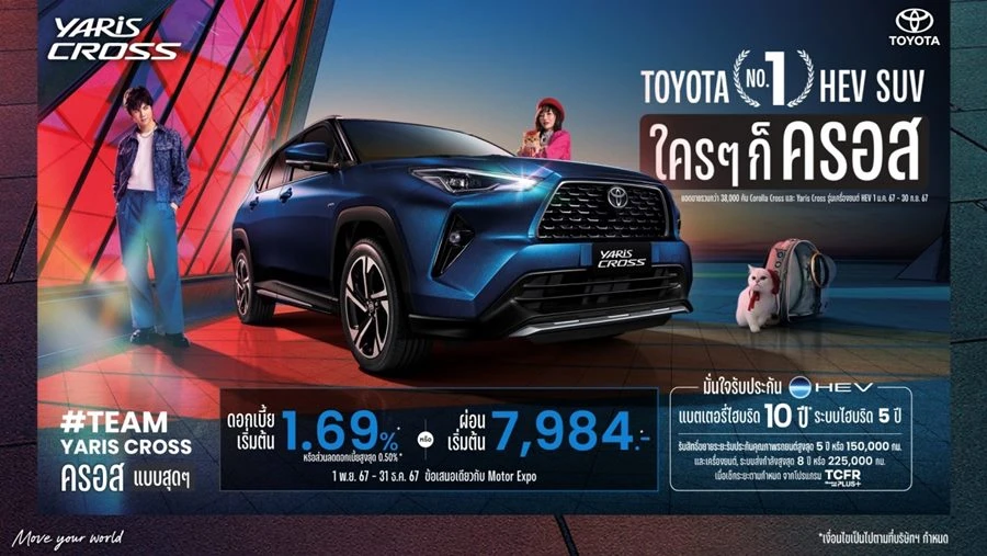 โตโยต้า No.1 HEV SUV ใครๆ ก็ครอส (*ยอดขายรวมระหว่างเดือนมกราคม – กันยายน พ.ศ. 2567)
