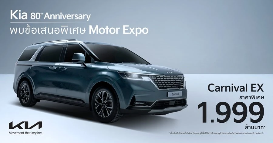 โดยข้อเสนอที่เป็นไฮไลท์สำหรับ The Kia Carnival คือ การนำเสนอราคาพิเศษให้กับ Kia Carnival EX ในราคา 1,999,000 บาท และ The Kia Carnival SXL Luxury ที่มอบสิทธิประโยชน์สูงสุด 400,000 บาท โดยทุกรุ่นมาพร้อมกับโปรโมชัน รับประกันคุณภาพยาวนาน 5 ปี บริการช่วยเหลือฉุกเฉิน ระยะเวลา 5 ปี