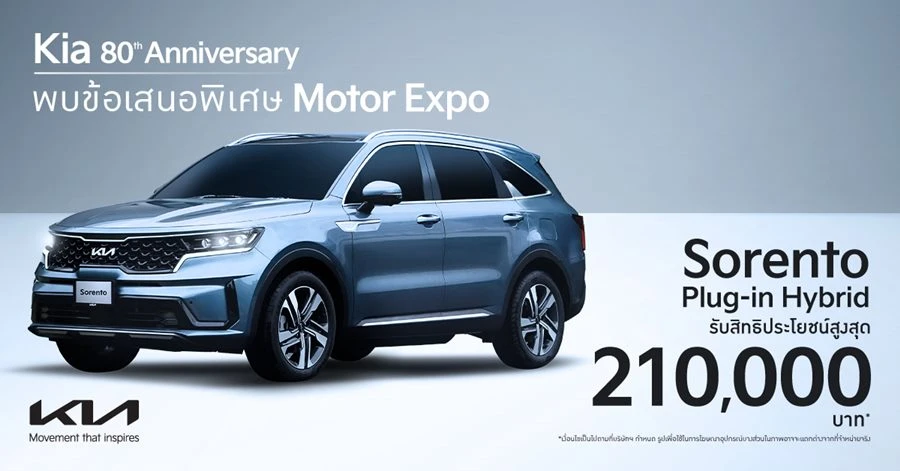 The Kia EV9 GT-Line AWD พร้อมด้วย The Kia Sorento รุ่น Premium HEV และรุ่น Premium Plus PHEV ผู้ที่สนใจสามารถร่วมสัมผัสยนตกรรมต่าง ๆ ได้ ณ บูธเกียหมายเลข A22 อิมแพ็ค ชาเลนเจอร์ ฮอลล์ 1 เมืองทองธานี ในวันที่ 29 พฤศจิกายน – 10 ธันวาคม 2567
