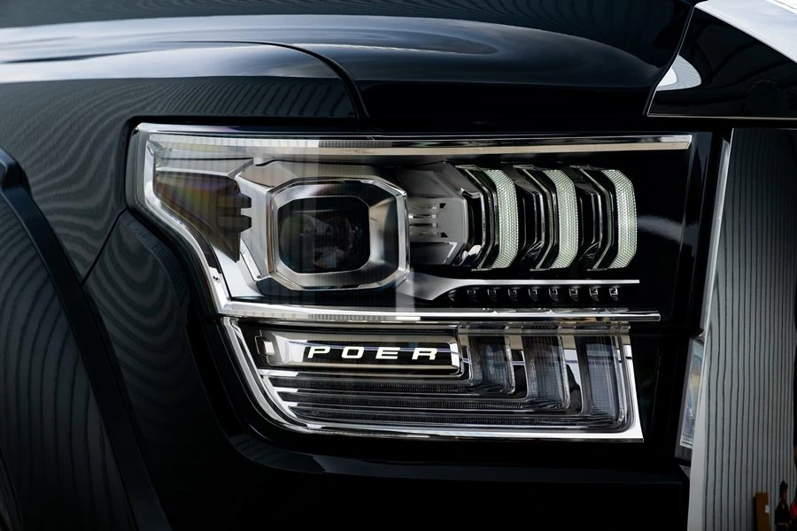 สำหรับการออกแบบภายนอกของ GWM POER SAHAR HEV เริ่มจากดีไซน์ด้านหน้าที่ตกแต่งด้วยกระจังหน้าโครเมียมดีไซน์ใหม่สะท้อนความเรียบหรูอย่างมีระดับให้กับผู้ขับขี่ มาพร้อมกับไฟหน้า LED อัจฉริยะหลากหลายรูปแบบ ทั้งระบบเปิด-ปิดไฟหน้าอัตโนมัติ ระบบปรับไฟสูง-ต่ำอัตโนมัติ และฟังก์ชันหน่วงเวลาไฟส่องทางหลังดับเครื่องยนต์ (Follow Me Home) ร่วมกับระบบไฟส่องสว่างเวลากลางวันแบบ LED (DRL – Daytime Running Light) ระบบไฟตัดหมอกด้านหน้า-หลังแบบ LED (เฉพาะรุ่น 2.0T HEV ULTRA DOUBLE CAB AUTO 4WD) และระบบไฟท้ายแบบ LED นอกจากนี้บริเวณไฟหน้ายังมาพร้อมกับโลโก้ POER ที่ช่วยสะท้อนตัวตนความเป็นรถกระบะพรีเมียมได้เป็นอย่างดี