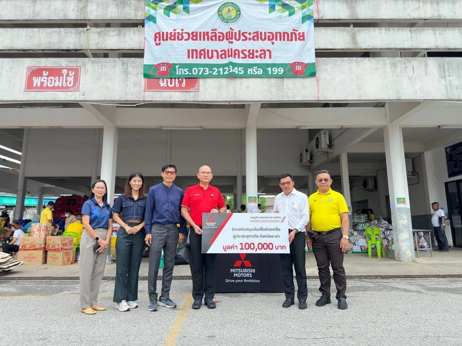 บริษัท มิตซูบิชิ มอเตอร์ส (ประเทศไทย) จำกัด ร่วมส่งมอบความห่วงใยและกำลังใจแก่ผู้ประสบอุทกภัยในจังหวัดยะลา โดยมอบเงินสนับสนุนจำนวน 100,000 บาท ให้แก่ ศูนย์ช่วยเหลือผู้ประสบอุทกภัย เทศบาลนครยะลา เพื่อสนับสนุนภารกิจช่วยเหลือและบรรเทาความเดือดร้อนให้แก่ประชาชนในพื้นที่ที่ได้รับผลกระทบ สอดคล้องกับปณิธานในด้านการช่วยเหลือสังคมของมิตซูบิชิ มอเตอร์ส ประเทศไทย ภายใต้วิสัยทัศน์ สรรค์สร้าง เคียงข้าง สังคมไทย