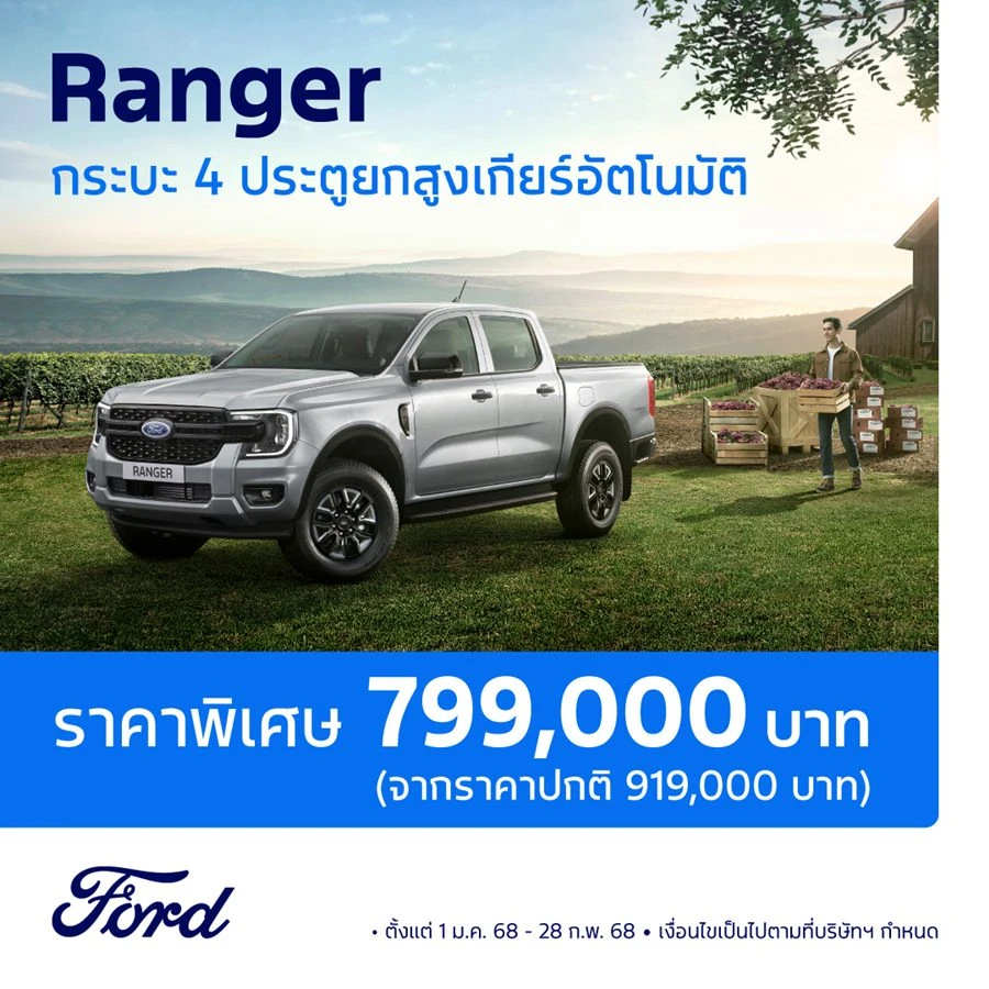 ฟอร์ด ประเทศไทย ต้อนรับปีใหม่ด้วยการต่อแคมเปญพิเศษสุดคุ้มจากช่วงปลายปีที่ผ่านมา โดยมอบข้อเสนอที่ตอบโจทย์ทุกความต้องการด้วยราคาที่คุ้มค่าและอัตราดอกเบี้ยพิเศษ ครอบคลุมรถหลากหลายรุ่น ได้แก่ ฟอร์ด เรนเจอร์ XLS ใหม่ รุ่นปี 2024 ราคาพิเศษ 799,000 บาท และฟอร์ด เรนเจอร์ แร็พเตอร์ เครื่องยนต์ดีเซล 2.0 ลิตร ไบ-เทอร์โบ ราคาพิเศษ 1,699,000 บาท สำหรับลูกค้าที่จองรถฟอร์ดระหว่างวันที่ 1 มกราคม ถึง 28 กุมภาพันธ์ 2568 และ ฟอร์ด เอเวอเรสต์ เทรนด์ ราคาพิเศษ 1,249,000 บาท สำหรับลูกค้าที่จองรถฟอร์ดระหว่างวันที่ 1 มกราคม ถึง 31 มีนาคม 2568 ที่โชว์รูมฟอร์ดทั่วประเทศ