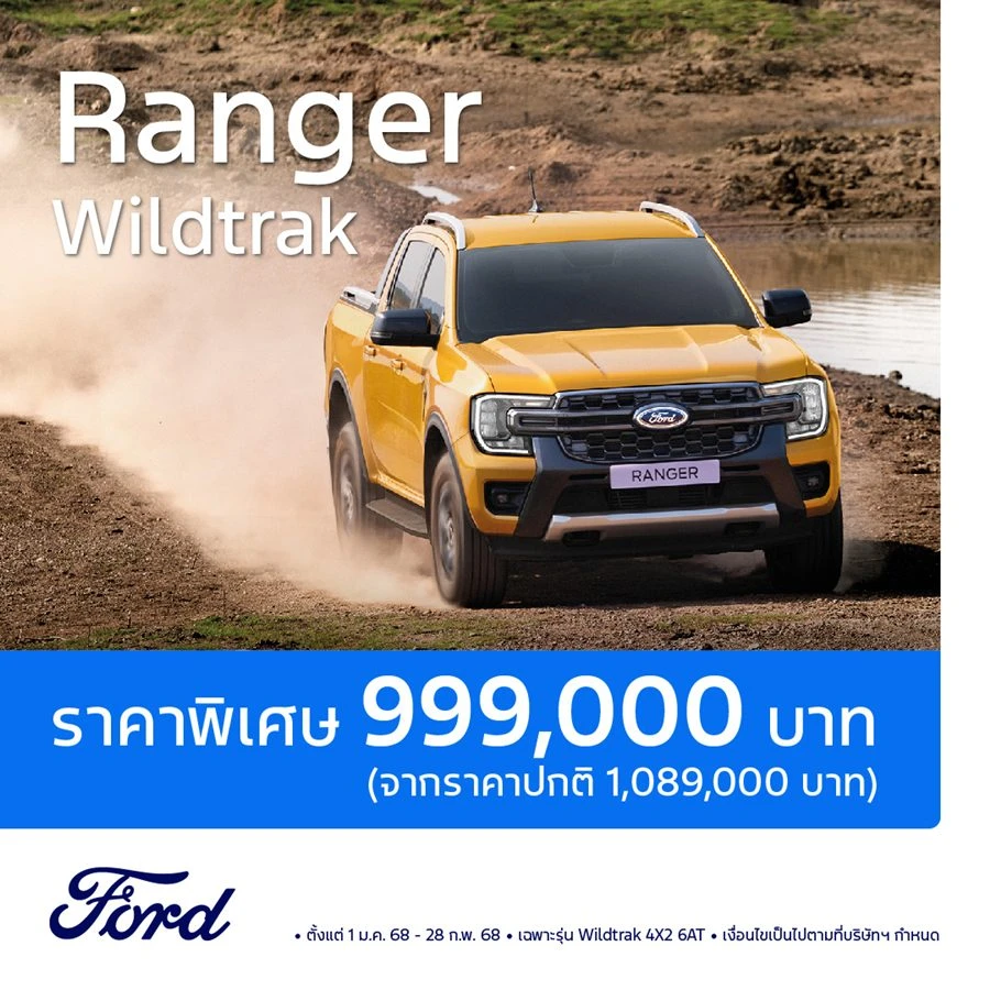 - ฟอร์ด เรนเจอร์ ไวลด์แทรค 2.0 ลิตร ขับเคลื่อนสองล้อ เกียร์อัตโนมัติ ราคาพิเศษ 999,000 บาท จากราคาปกติ 1,089,000 บาท