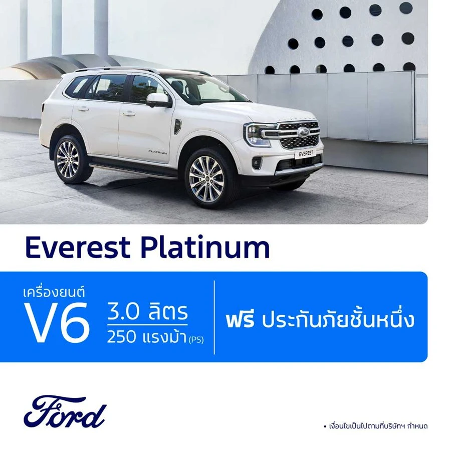 - ฟอร์ด เอเวอเรสต์ แพลทินัม ดอกเบี้ยพิเศษ 1.99% ดาวน์ 25% ผ่อนนาน 48 เดือน ฟรีประกันภัยชั้นหนึ่ง
