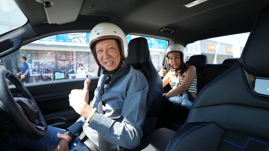 บรรยายภาพ : แซนดี้ เคราแก้ว สตูวิค และแจ็ค เลมวาร์ด นักแข่งมืออาชีพจากทีมฟอร์ด ไทยแลนด์ เรซซิ่ง ร่วมกิจกรรมทดสอบขับพร้อมแลกเปลี่ยนประสบการณ์ความประทับใจเกี่ยวกับการขับขี่ฟอร์ด เรนเจอร์ MS-RT เป็นครั้งแรก